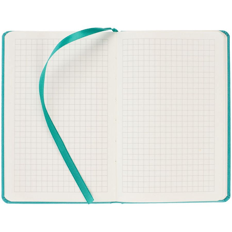 Твердая обложка из материала Latte, бирюзовый, ляссе в цвет обложки.