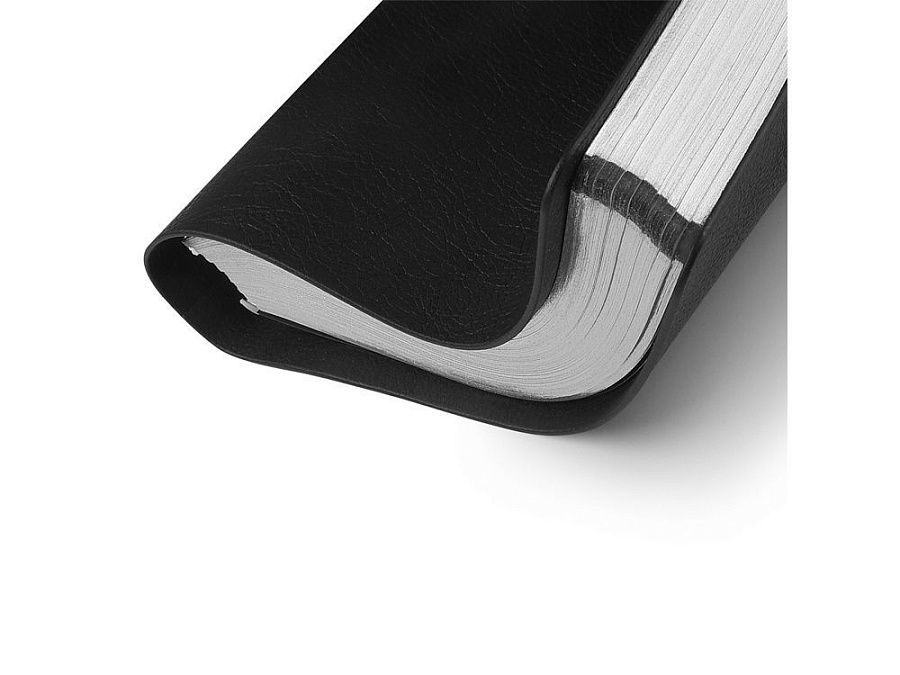 Гибкая (flex) обложка из фактурной высококачественной экокожи, скругленный угол обложки и блока, полускрытый гребень, позволяющий держать ежедневник открытым на столе и работать с комфортом, делая записи, серебряный обрез - все это визитная карточка ежедневника ORBIT от Bruno Visconti.