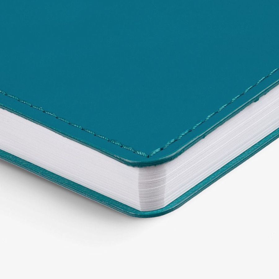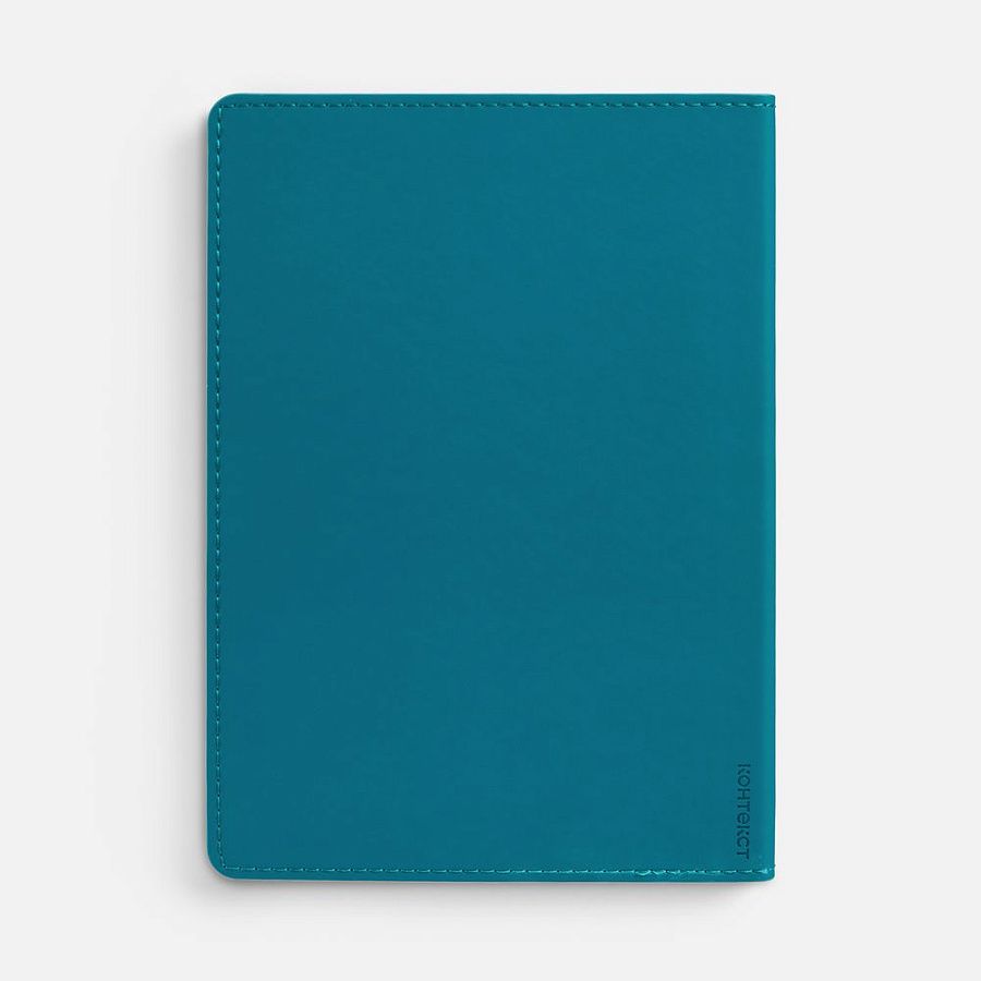 Ежедневник с гибкой обложкой из материала Soft Touch, цвет морской волны II и Latte, морская волна (внутренний материал), дополнен петелькой для ручки из покровного материала, капталом, ляссе и закрашенным срезом обложки в цвет материала.