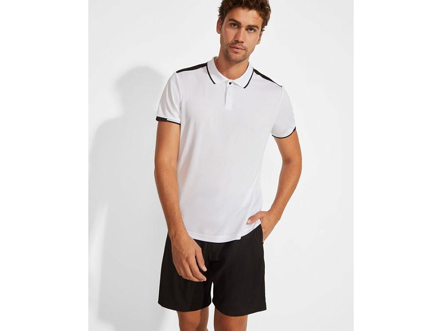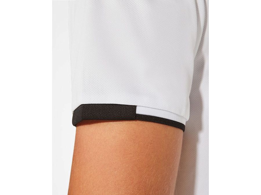 Спортивная рубашка поло с коротким рукавом из антибактериального переработанного полиэстера. Воротник и манжеты из риба 1x1. Усиленные закрытые швы в воротнике. Планка с 2 пуговицами· и скрытой нижней пуговицей. Контрастные детали и плечи. Боковые разрезы в швах