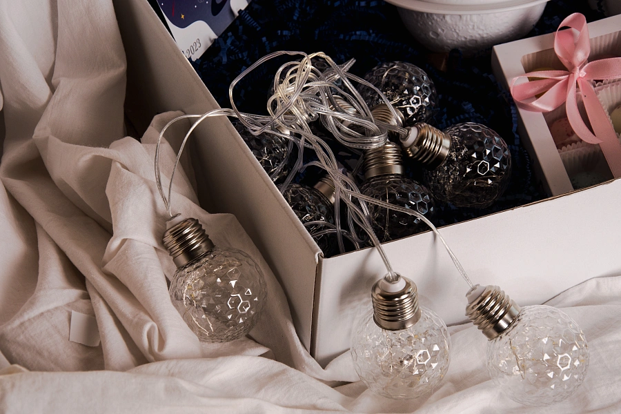 Гирлянда с теплым светом создаст праздничное настроение и добавит уюта в интерьер. Она может использоваться как для украшения ёлки, так и для декорирования комнаты.