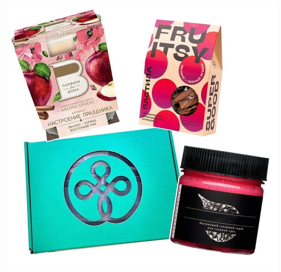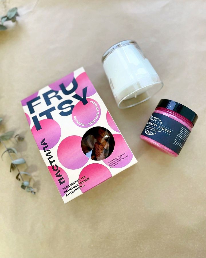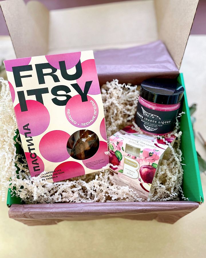 У природы нет плохой погоды, потому что мы следуем моде. Берем все сладкое и аппетитное и создаем настоящий фруктовый набор. Скраб напитает кожу маслом абрикосовых косточек. Аромасвеча наполнит квартиру яблочным ароматом. А пастила насытит организм смесью душистых печеных яблок и лесных ягод.