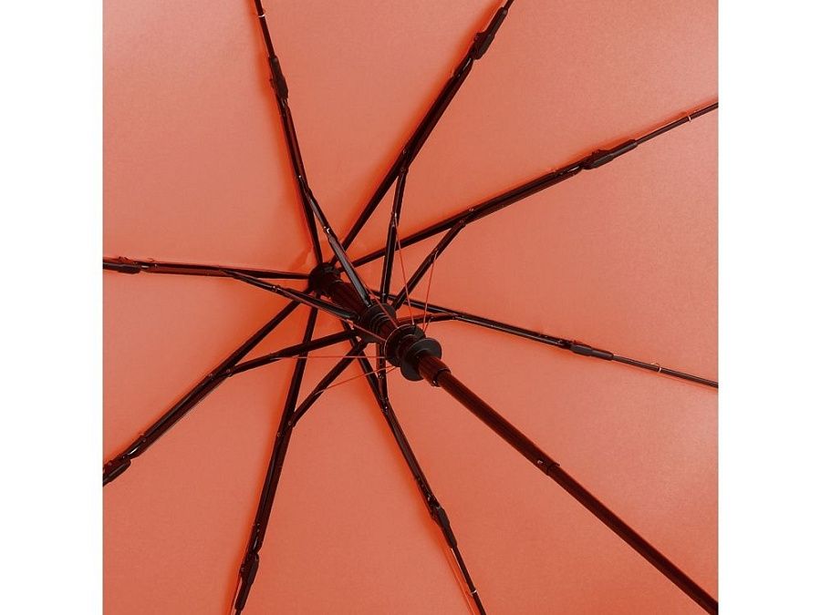 Зонт быстро открывается нажатием кнопки на ручке. Система защиты от ветра сохранит зонт в любую погоду. По краю купола нанесена светоотражающая отделка для безопасности в темное время суток.