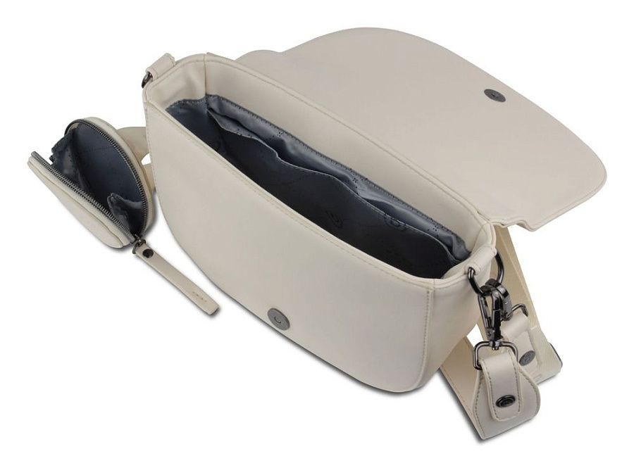 Внешняя организация: съёмный регулируемый плечевой ремень (до 50 см), съёмный регулируемый плечевой ремень (до 140 см) со съёмным кошельком на молнии