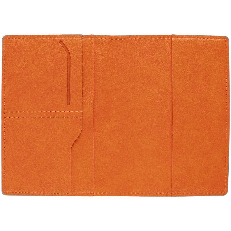 Имеет основное отделение для паспорта и 2 кармана для визиток или кредитных карт.
