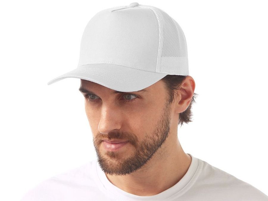 Пяти панельная бейсболка с передней частью из хлопка для комфорта головы и лба. Задняя часть из пластиковой сетки, которая отвечает за циркуляцию воздуха и обеспечивает изделию износостойкость. Для подгонки по размеру головы — пластиковая застежка.
