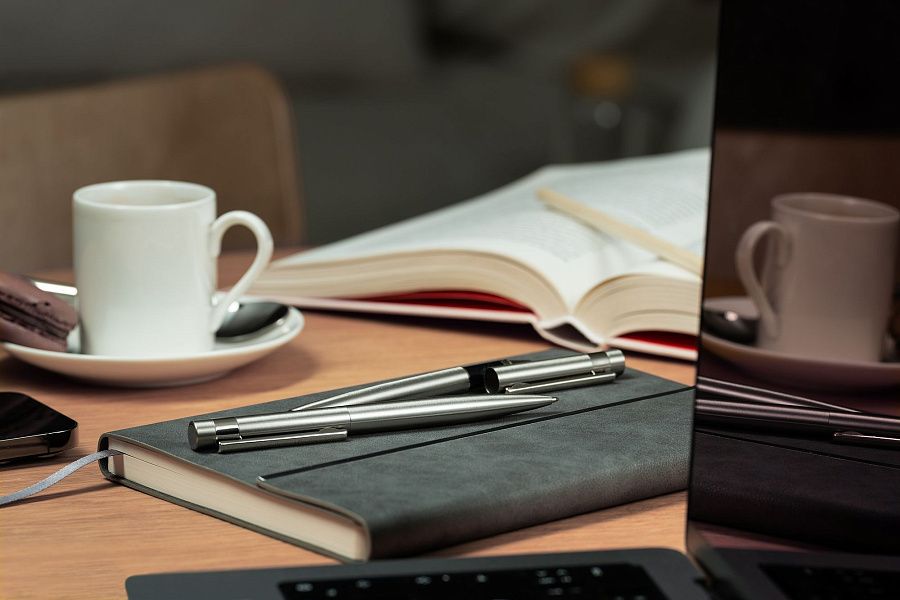 Ручка и роллер Platero из переработанной вторичной стали в изящном матовом корпусе — вклад в экологию и сокращение углеродного следа. Уверенность в себе и в будущем.