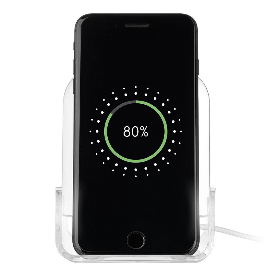 Конструкция позволяет заряжать смартфон в вертикальном и горизонтальном положении, а также просто использовать как подставку.