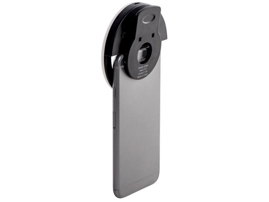 Световое кольцо "Glitter" делает ваши селфи- фото и видео более качественными за счет дополнительного освещения. Подсветка представлена нейтральным белым цветом от 48 светодиодов с 3 режимами яркости. Время непрерывного свечения - до 2 часов. Можно быстро зарядить от любого пауэрбэнка по micro USB. Благодаря удобной конструкции селфи-кольцо устанавливается и снимается за секунду. На корпусе имеются силиконовые защитные полоски, чтобы исключить даже малейшие повреждения экрану смартфона.