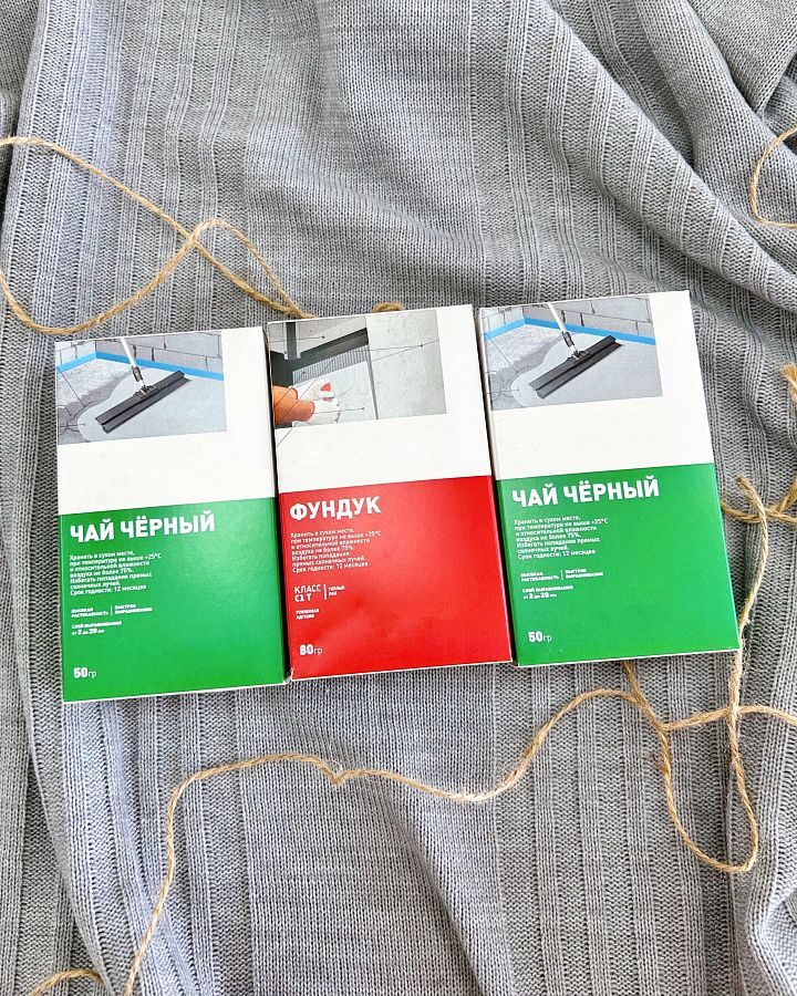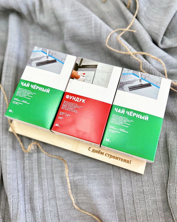 Разгружаем с органайзера-паллета полезные предметы. Фундук и чай будут упакованы в индивидуальную строительную упаковку, чем удивят ваших партнёров и клиентов.