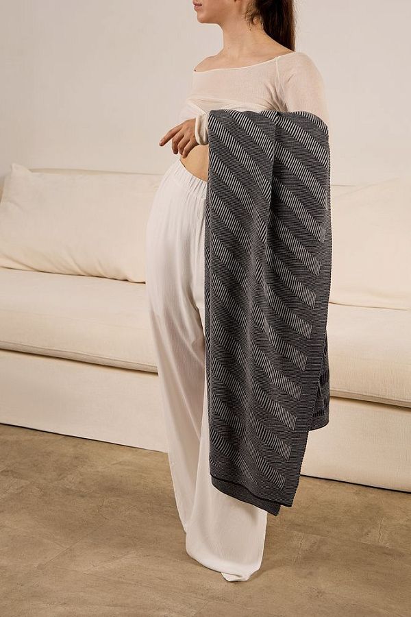 Акриловый плед в широкую полоску преобразит интерьер, сделает его теплее, комфортнее и уютнее. Рельефная фактура и насыщенные благородные оттенки: с пледом Locus Solus легко создать свое идеальное место уединения. Для перезагрузки, восстановления внутренней тишины и сохранения баланса.