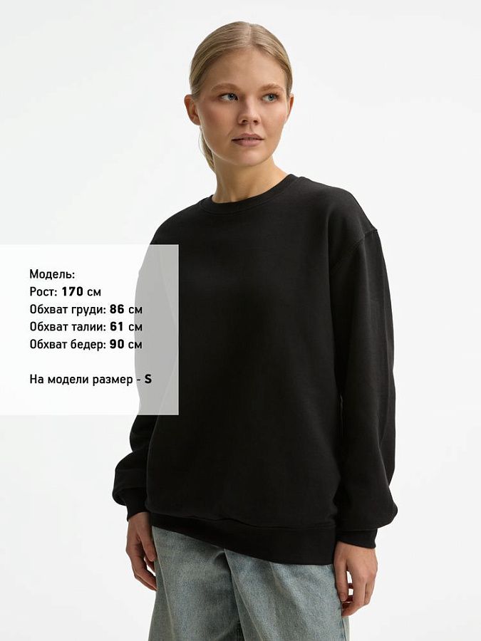Свитшот унисекс из хлопка и переработанного полиэстера с круглым вырезом и втачным рукавом.
