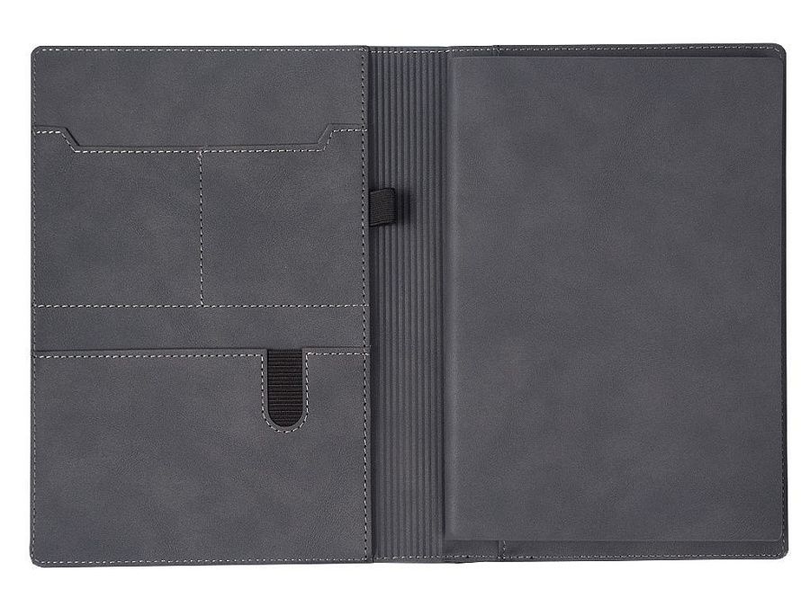 Ежедневник в супербложке полугибкий Palermo NUBA A5. Ежедневник выполнен из мягкого кожзама, бархатный, матовый. Выглядит стильно и дорого. Внутри суперобложки расположены два кармана для кредитных карточек или визиток, большой карман для разных мелочей или бумаг и петля для ручки.