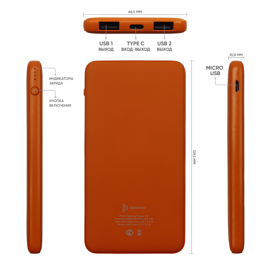 Внешний аккумулятор Bplanner Power 1 ST, софт-тач, 5000 mAh (Белый)