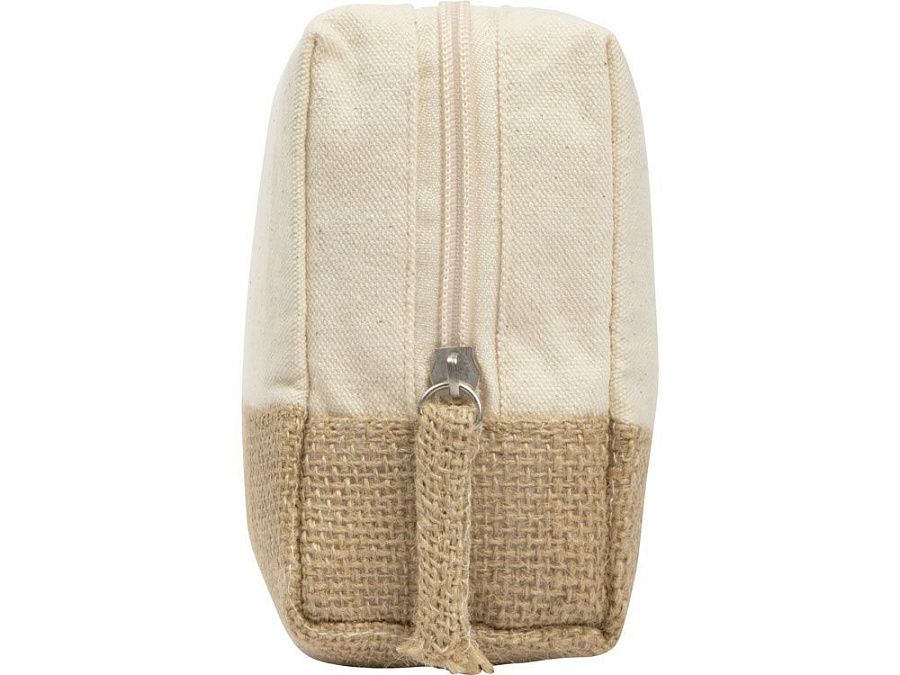 Вместительная косметичка классической формы, визуально разделенная на две части в оттенках небеленой ткани. Нижняя часть косметички выполнена из джута, верхняя – из хлопка. Материал подкладки – полиэстер. Минимальное использование синтетических тканей, экологичный продукт. За счет эргономичной формы, вместительности и ручки идеальна для путешествий.