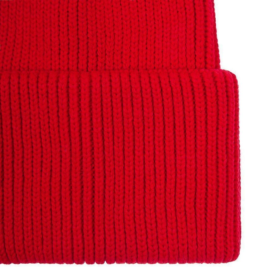Удлиненная шапка объемной фактурной вязки с отворотом.