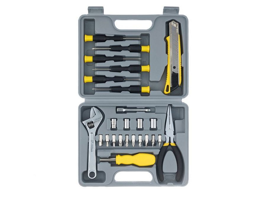 Набор инструментов на 25 предметов STINGER W0402 поможет справиться с широким спектром хозяйственно-бытовых задач. Все инструменты изготовлены из высококачественной закаленной углеродистой стали с хромированным покрытием и прочного углепластика (карбона). Набор включает в себя все основные инструменты, необходимые при проведении мелкого ремонта, починки бытовой техники или сборки мебели.