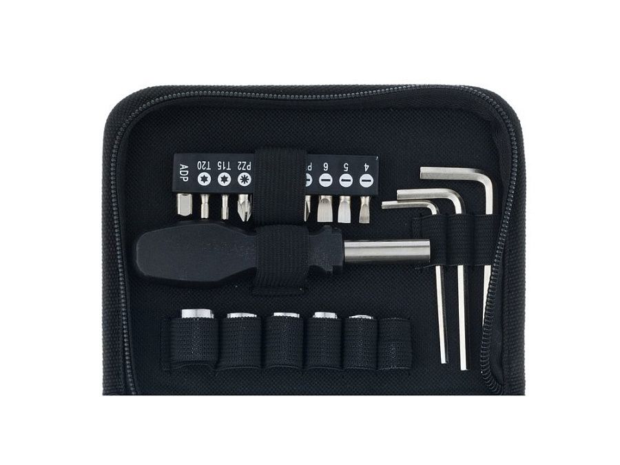 Набор инструментов STINGER W0109 на 25 предметов придётся по вкусу всем тем, кто привык всё делать своими руками. С таким комплектом можно без труда произвести практически любой мелкий бытовой ремонт. Все предметы надёжно закреплены в прочном нейлоновом чехле. Этот компактный набор можно хранить в тумбочке, на полке, в шкафу или бардачке машины. Стальные рабочие части инструментов отличаются повышенной прочностью, рукоятки выполнены из износостойкого карбона. Для удобства чехол дополнен матерчатой ручкой для переноски.
