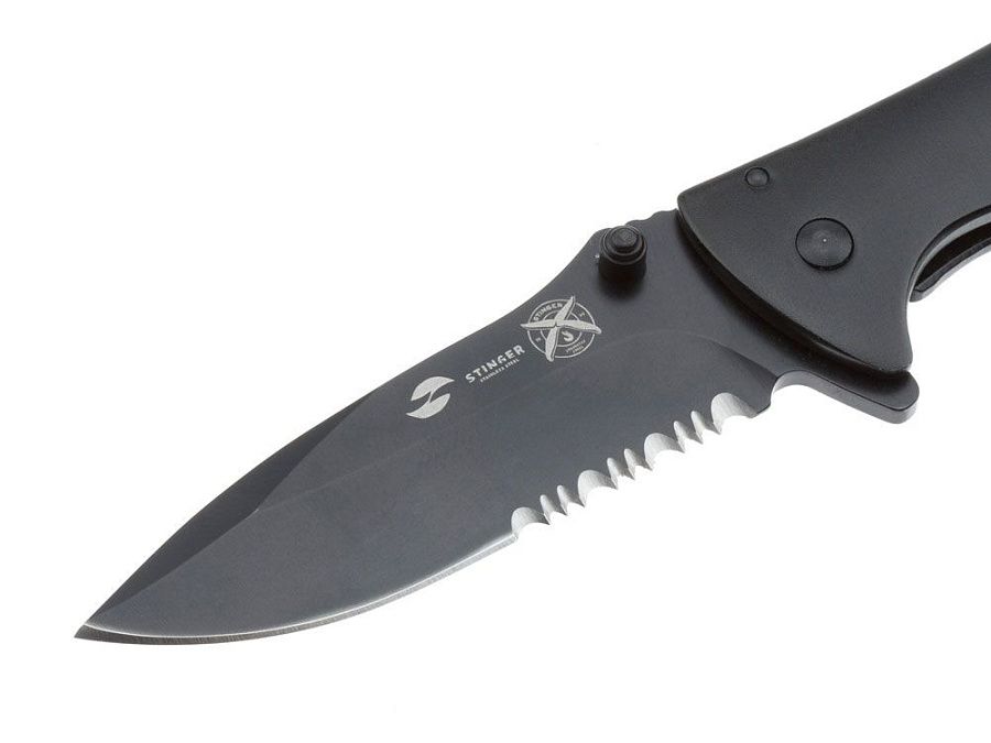 Особенности: лезвие с серрейторной кромкой, рукоять с клипом и отверстием под темляк