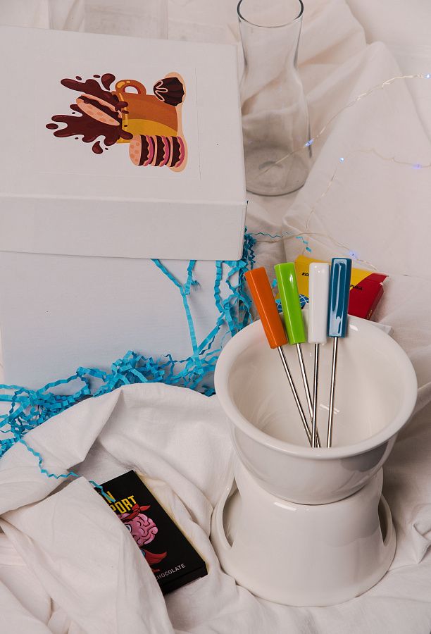 Подарочный набор «Фондю» — это идеальный подарок для любителей шоколада и приятных вечеров в кругу близких. В набор входит всё необходимое для создания неповторимой атмосферы: