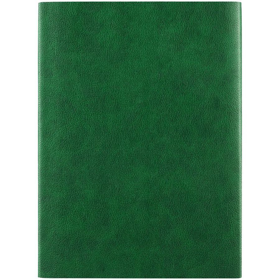 Ежедневник с гибкой обложкой, клапаном на магните и металлической отделкой клапана. Выполнен из материала Petrus, зеленый FF, дополнен серым ляссе.