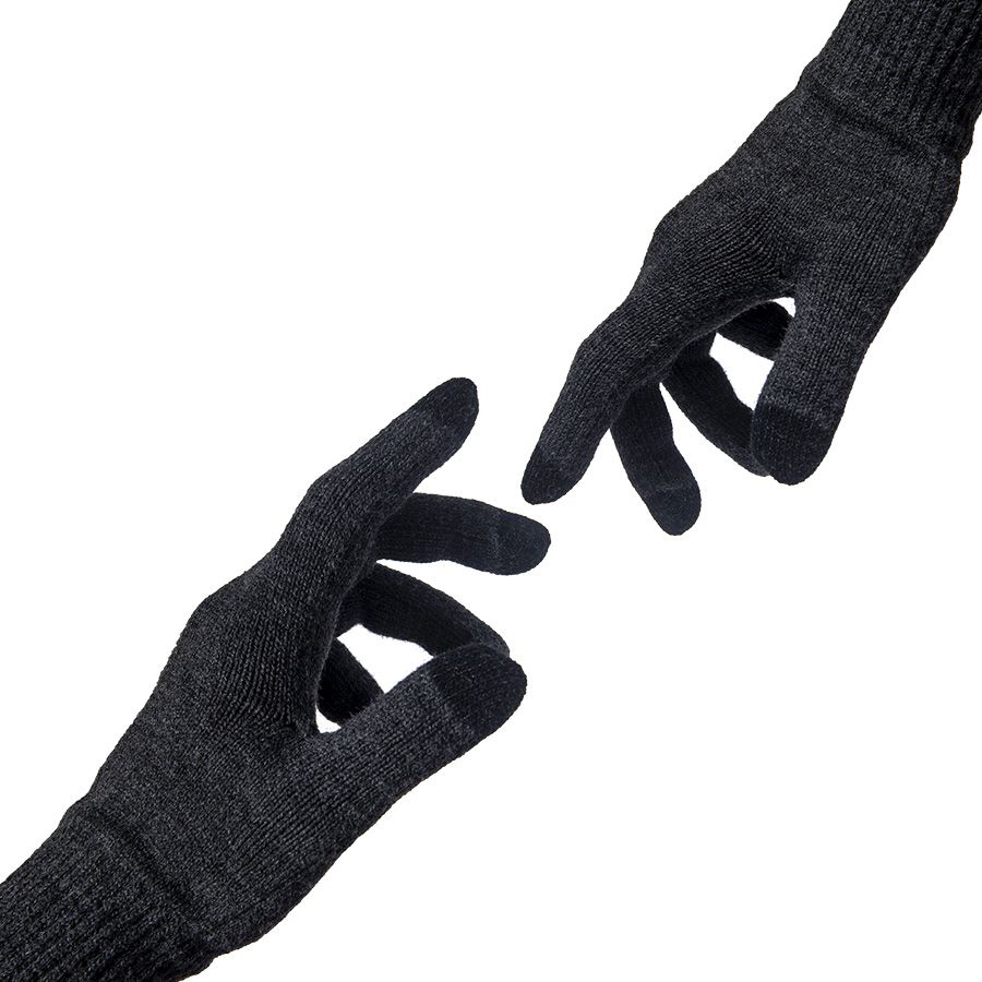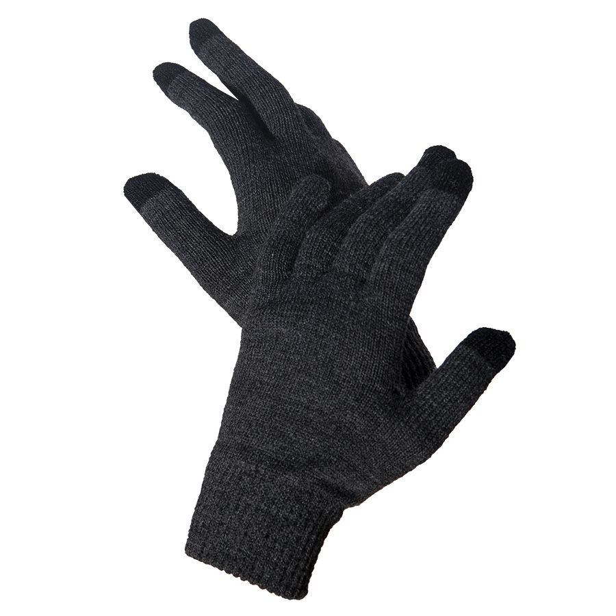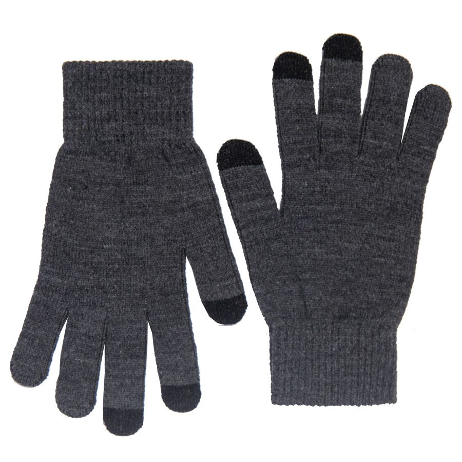 Перчатки из теплого и мягкого акрила с сенсорными наконечниками. Основной цвет: темно-серый меланж. Цвет сенсорных вставок: черный.