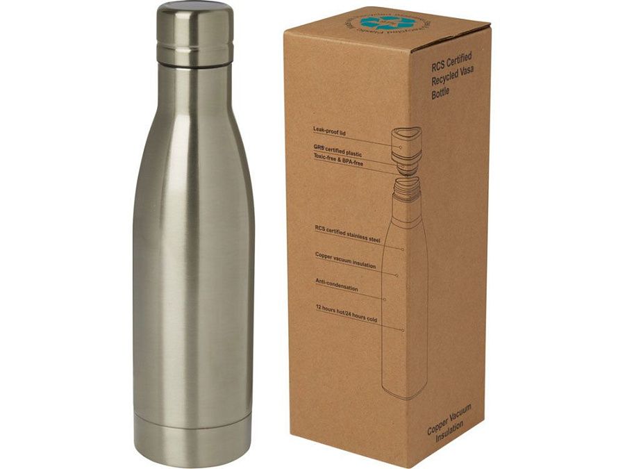 Ваши напитки останутся горячими в течение 12 часов и холодными в течение 24 часов в медной бутылке Vasa с вакуумной изоляцией. Бутылка с двойной стенкой и сделана из переработанной нержавеющей стали, сертифицированной по стандарту RCS, с вакуумной изоляцией и медным покрытием на внутренней стенке, что позволит вашему напитку оставаться абсолютно горячим или холодным словно лед, в зависимости от того, что вам нужно. Без содержания BPA, протестировано и одобрено согласно немецкому законодательству о безопасности пищевых продуктов (LFGB) и проверено на содержание фталатов согласно нормам REACH. Объем: 500 мл. Поставляется в коробке из экологичного и ответственного материала.