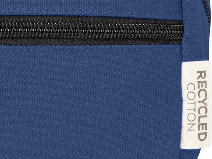 Косметичка из переработанного холста, сертифицированного по стандарту GRS, с подкладкой из переработанного РЕТ-пластика. Имеет передний карман на молнии и одно главное отделение на молнии с карманами для организации, а также удобную лямку. Декоративная металлическая пластина может придать логотипу сияние благодаря утонченному матовому покрытию. Емкость: 3,5 литр.