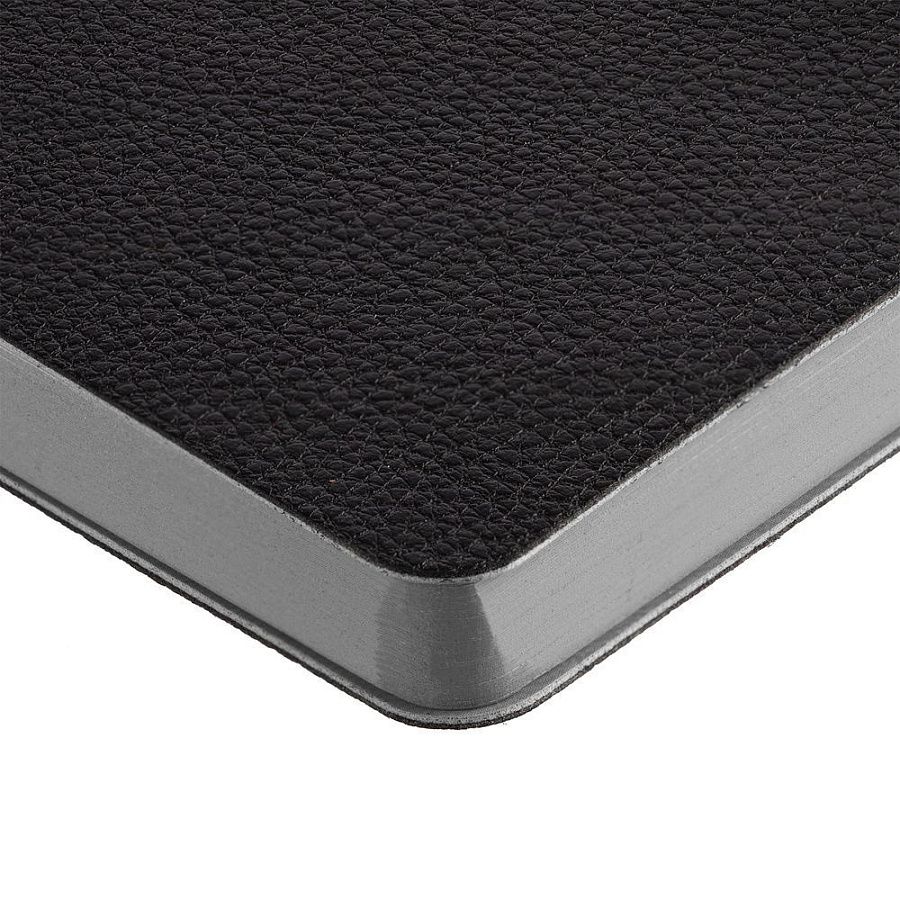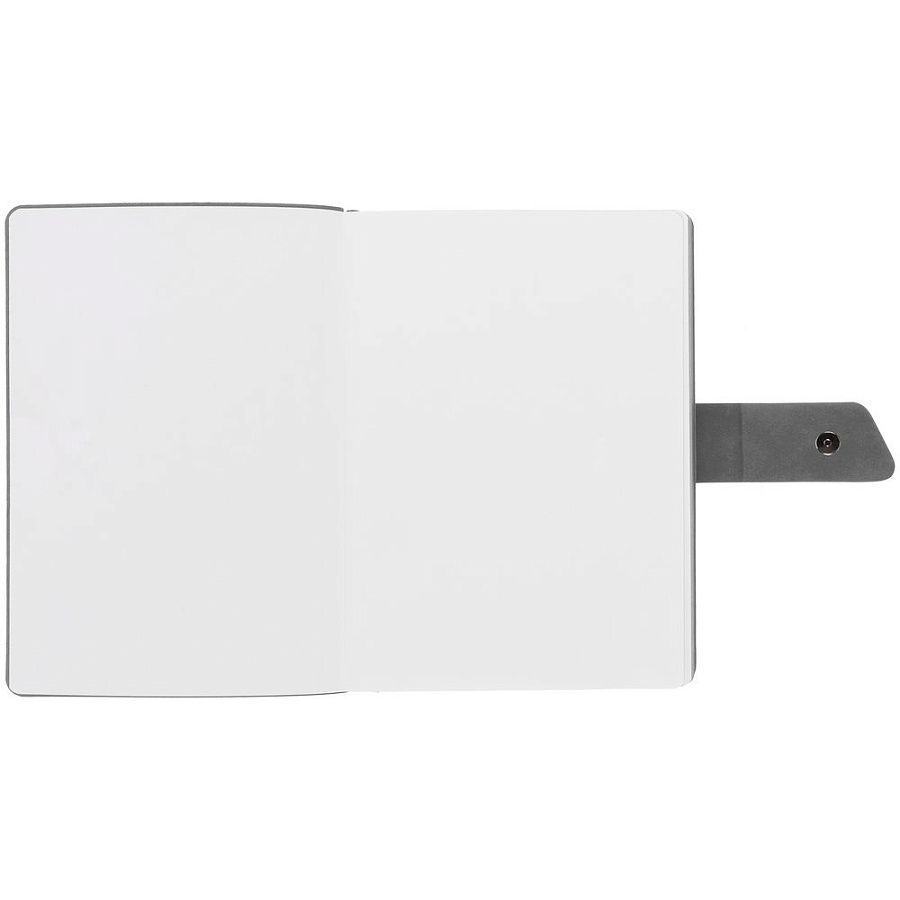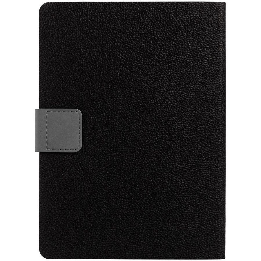 Ежедневник с гибкой обложкой, выполнен из материала La Fite, черный АА и Nubuck, серый СС, дополнен серым ляссе и хлястиком на кнопке.