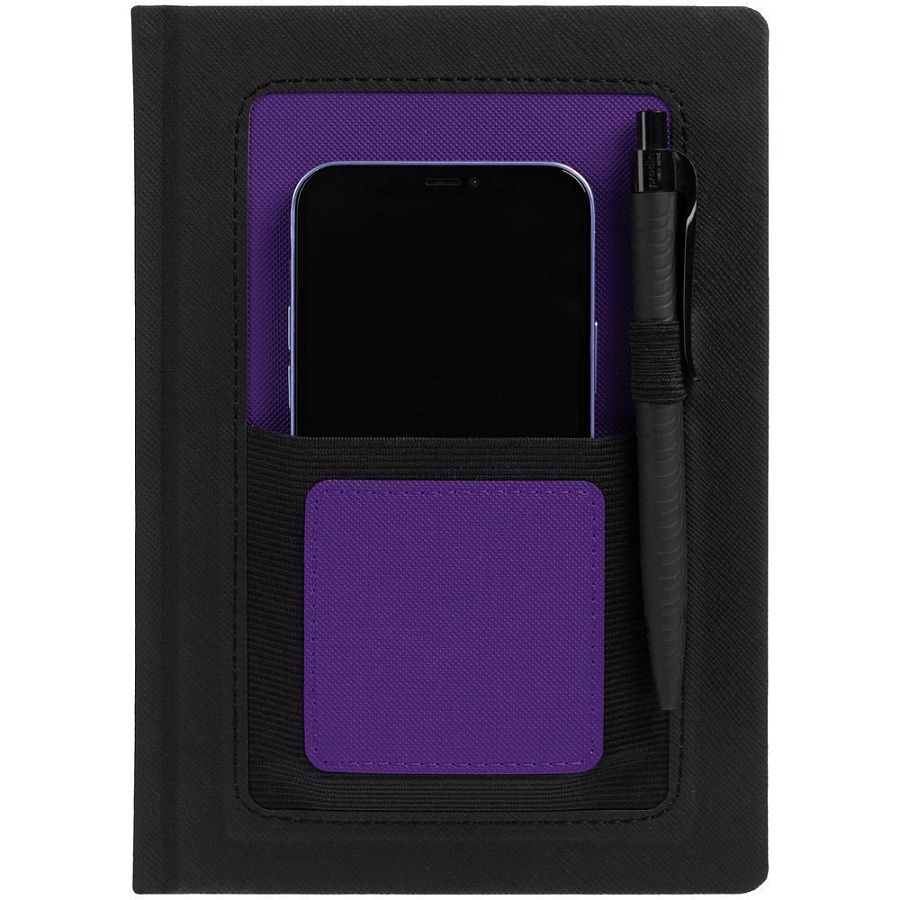Ежедневник с карманом шириной 10 см из резинки, в котором удобно разместить мобильный телефон или визитки для переговоров.