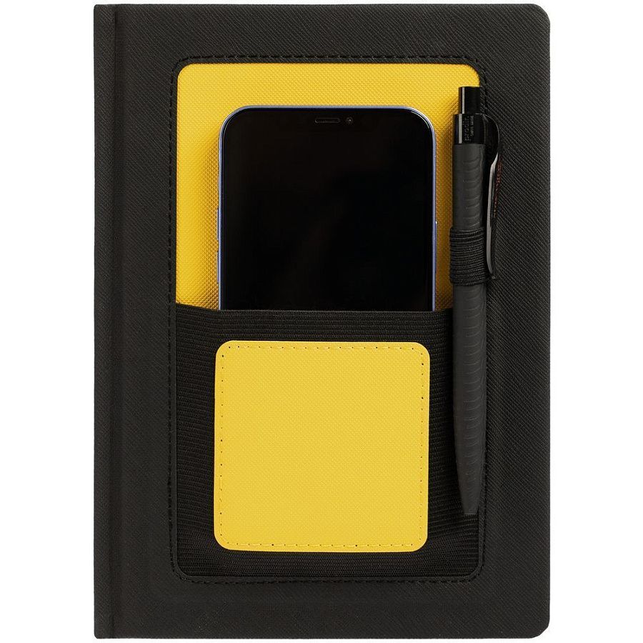 Ежедневник с карманом шириной 10 см из резинки, в котором удобно разместить мобильный телефон или визитки для переговоров.