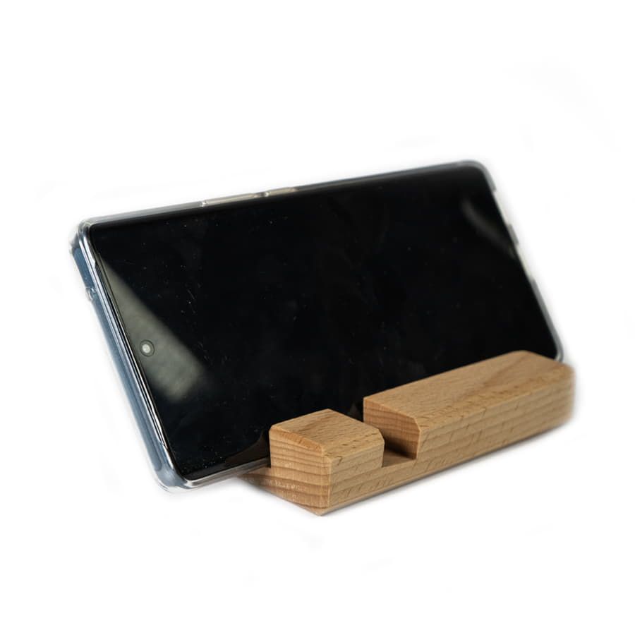 Подставка для смартфона, две разные выемки позволяют установить в держатель смартфон и/или планшет как в плотном бронечехле, так и без него, при этом смартфон и/или планшет будет хорошо зафиксирован, выполнен из премиум материала бук. Материал отличается следующими преимуществами: