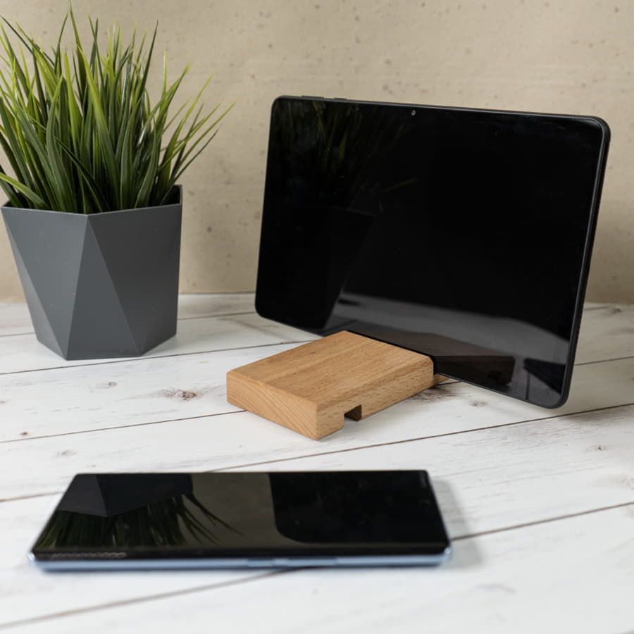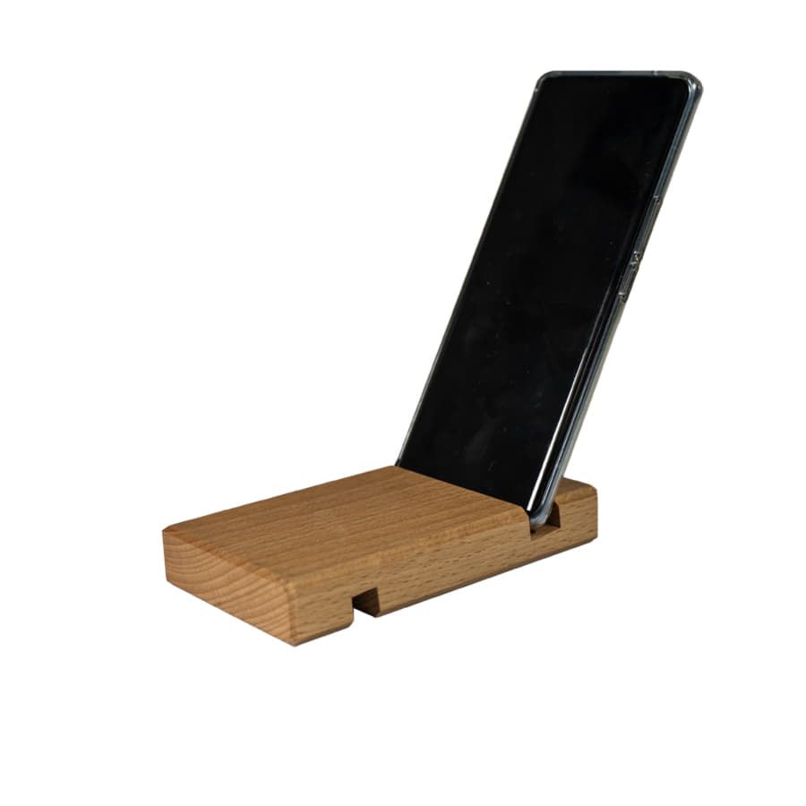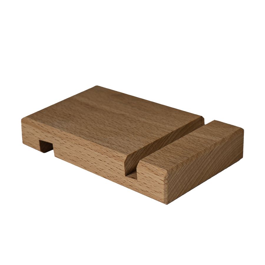 Подставка для смартфона, две разные выемки позволяют установить в держатель смартфон как в плотном бронечехле, так и без него, при этом смартфон будет хорошо зафиксирован, выполнен из премиум материала бук. Материал отличается следующими преимуществами:
