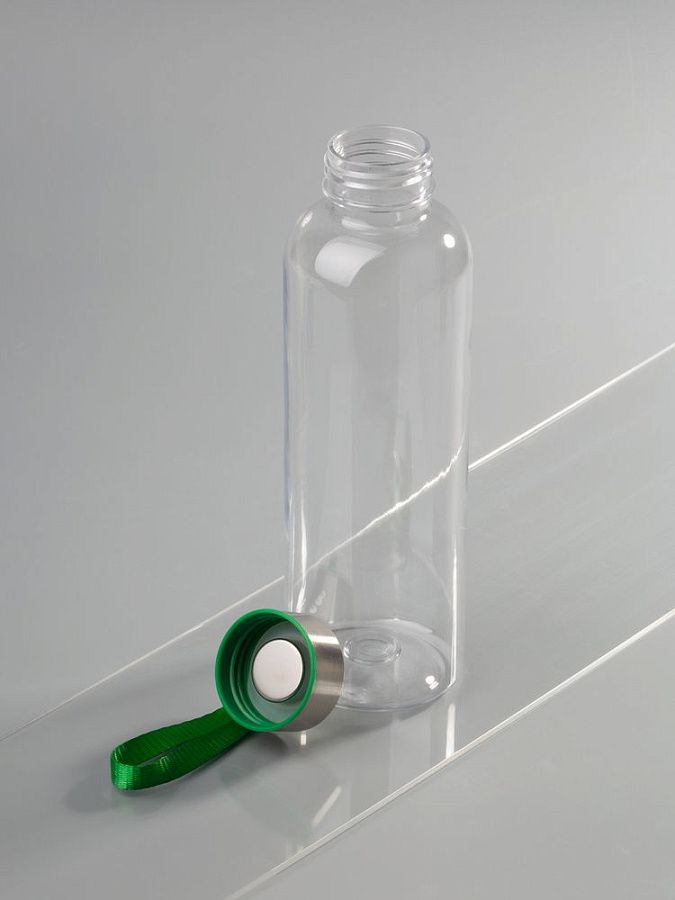Бутылка для воды классической формы с удобной петлей для переноски и широкими возможностями по нанесению: помимо круговой УФ-печати доступны гравировка крышки или полноцветный трансфер на ремешке.