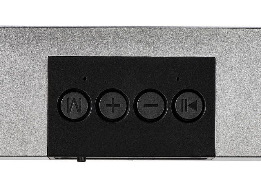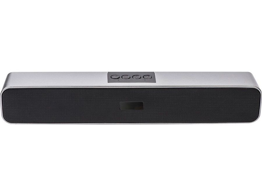 Портативная стереоколонка имеет два динамика по 3 Вт каждый, которые стереофонически распределяют звук. Саундбар воспроизводит музыку с USB-флешки и с SD-карты, а также по Bluetooth.