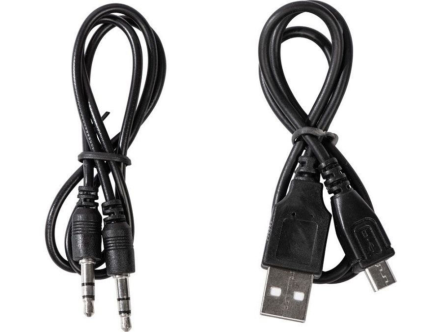 колонка, зарядный кабель micro usb, кабель aux, шильдик для печати