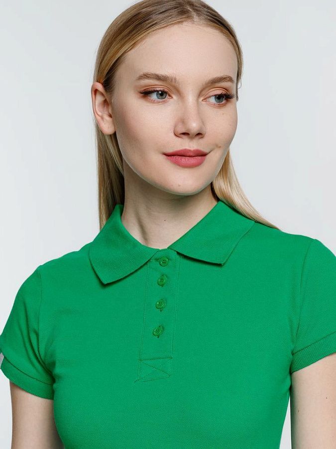 Приталенная женская рубашка поло из гребенного хлопка. Благодаря тонким и длинным волокнам хлопка материал футболки отличается гладкостью, ровностью и прочностью, отлично сохраняет форму, не деформируется и не выцветает при стирке.