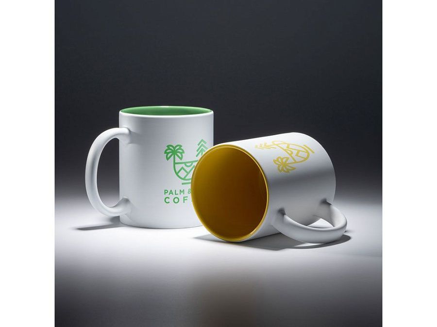 Керамическая кружка на 350 мл, подходит для лазерной гравировки. Можно использовать в СВЧ.