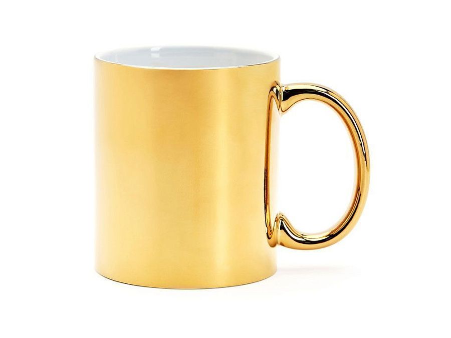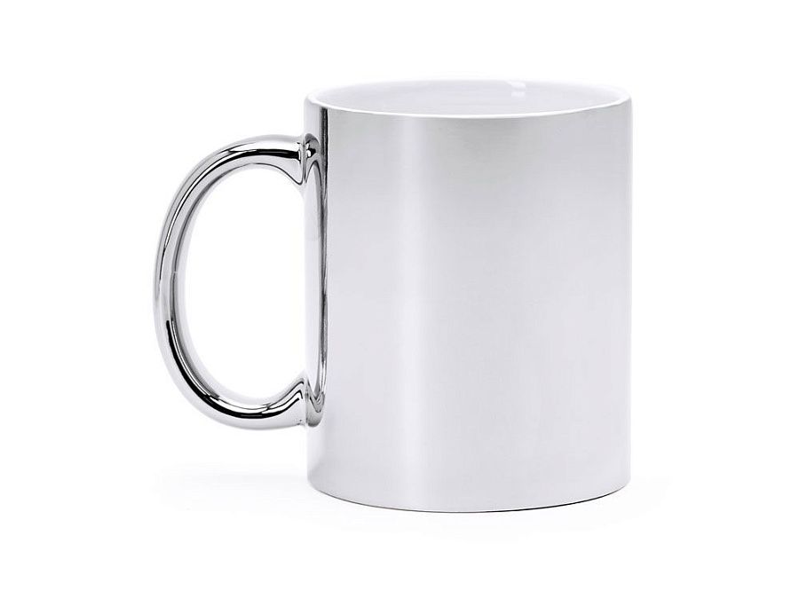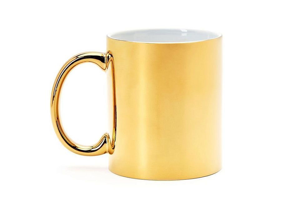 Керамическая кружка объемом 350 мл с глянцевым покрытием. Специально для лазерной гравировки. Доступна в серебряном и золотом цвете.