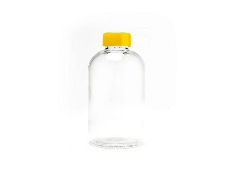 Стеклянная бутылка емкостью 600 мл. включает инновационный неопреновый чехол самых разных цветов с ручкой для переноски.