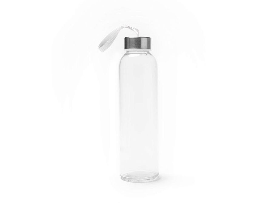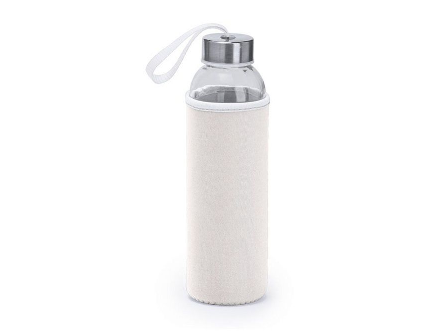 Стеклянная бутылка емкостью 500 мл, чехол из неопрена в сочетании с цветным ремешком для переноски.