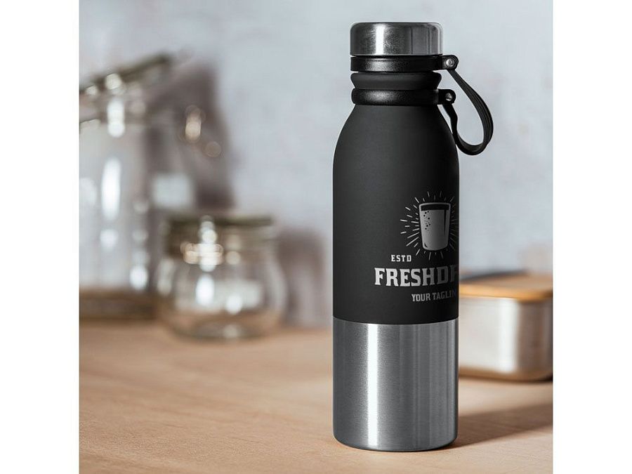 Бутылки из стали 304 с двухцветным корпусом и матовым покрытием. Пробка с гибкой резиновой ручкой. Объем 850 мл. Идеально подходит для создания оригинальных дизайнов.