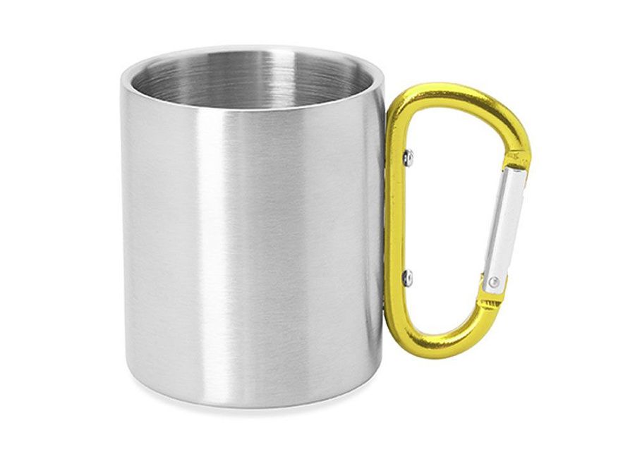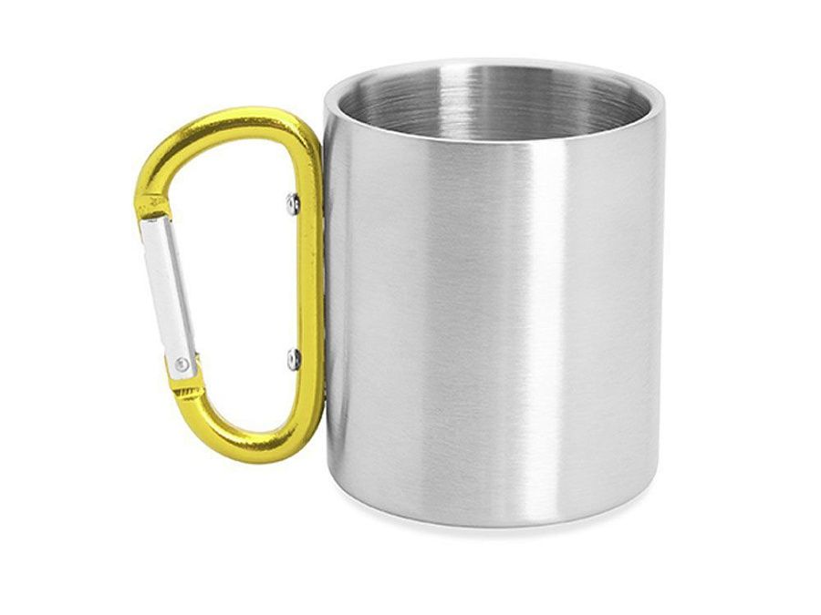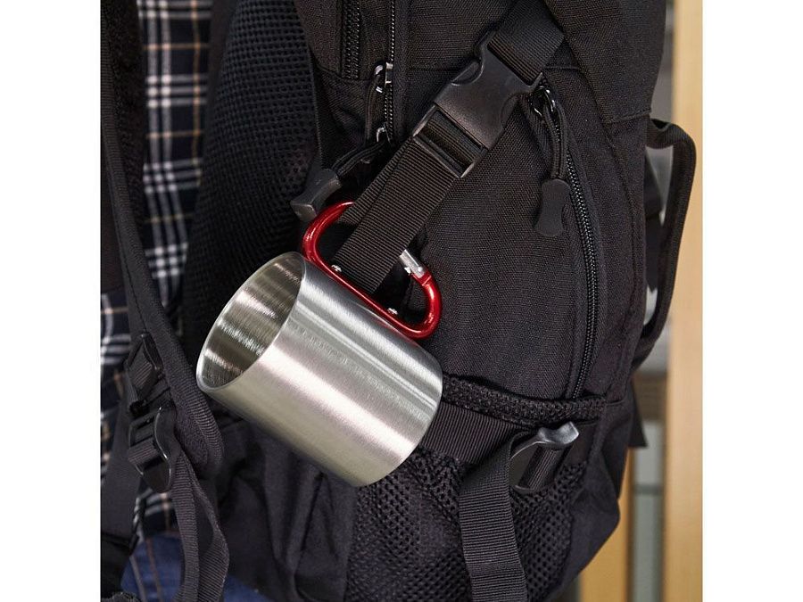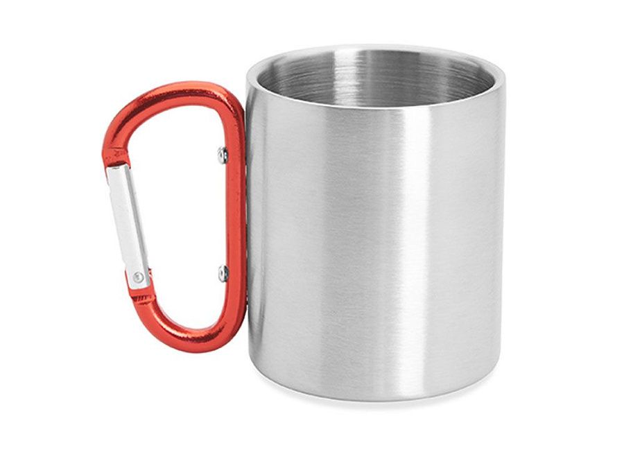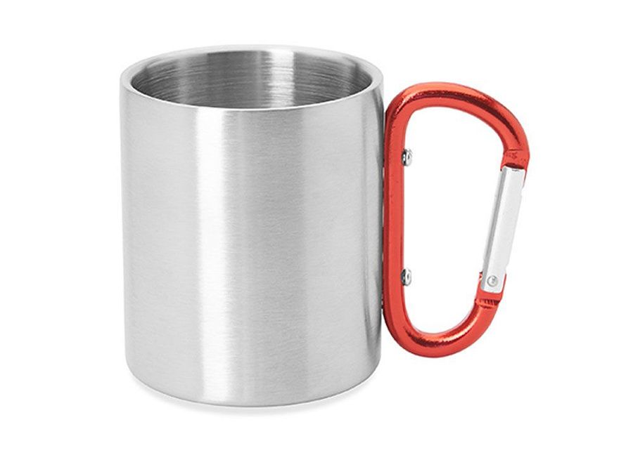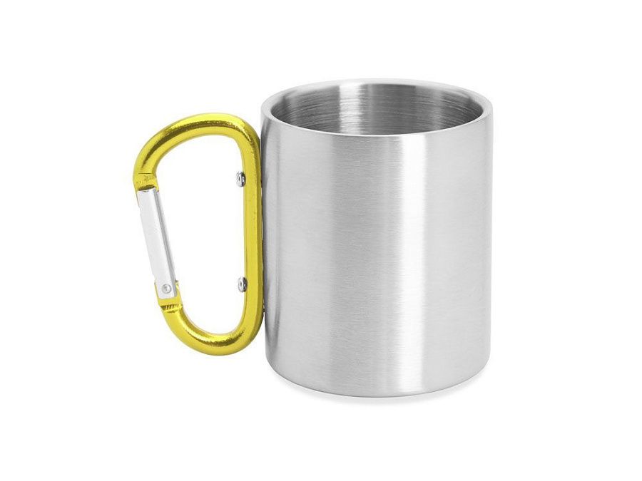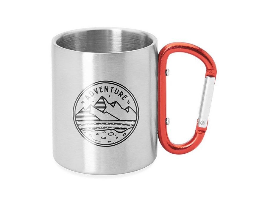 Двустенная металлическая кружка с ручкой-карабином. Доступен в различных цветах. Объем 230 мл.