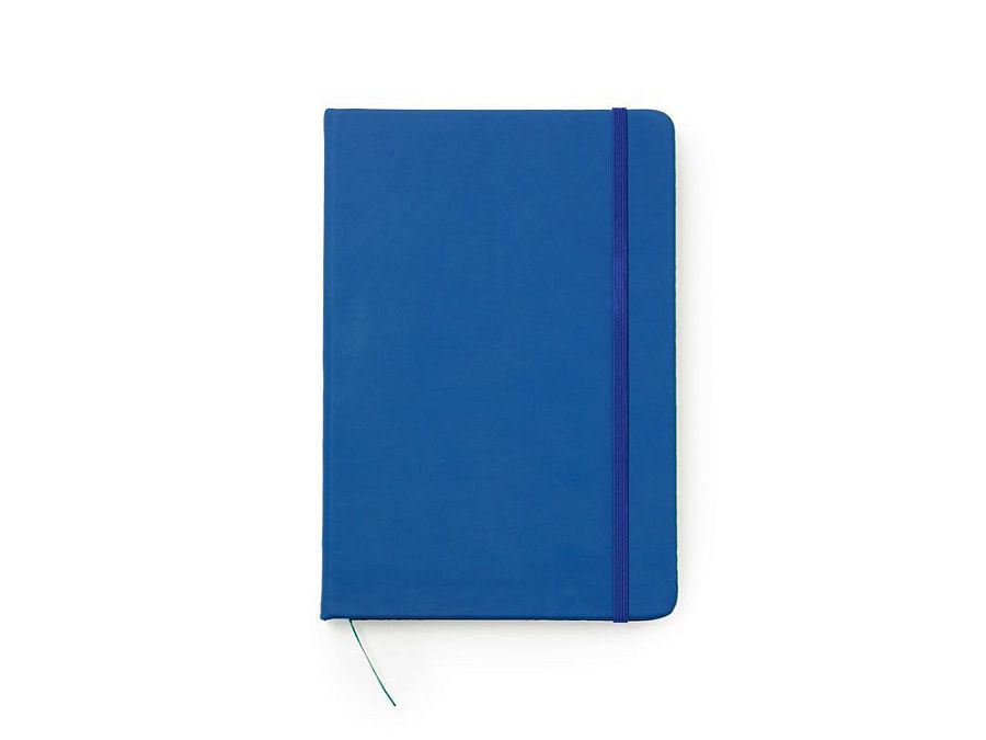 Блокнот формата А5 в обложке из искусственной кожи. Закладка и резинка. 100 листов в линейку.