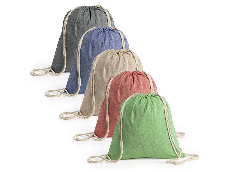 Рюкзак-мешок из переработанного хлопка плотностью 120 г/м² с меланжевой отделкой и шнурками натурального цвета. Доступен в различных цветах.