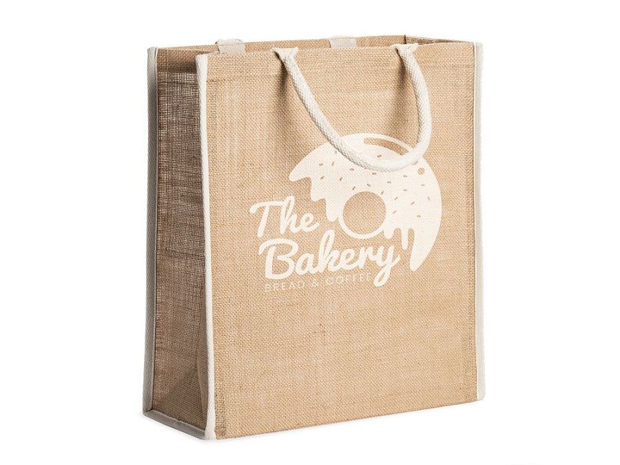 Сумка из натурального джута с отделкой и усиленными хлопковыми ручками.