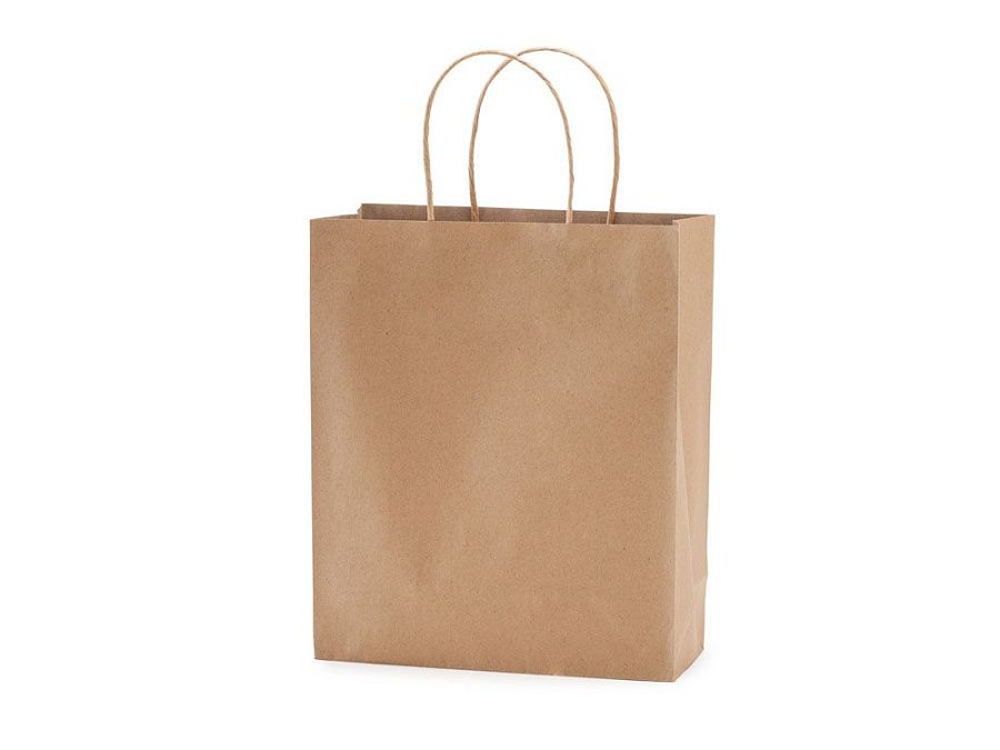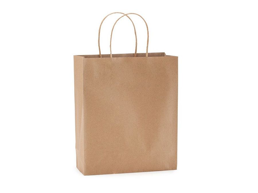 Бумажный пакет 110 г/кв.м натуральной отделки с усиленными короткими ручками витого дизайна.