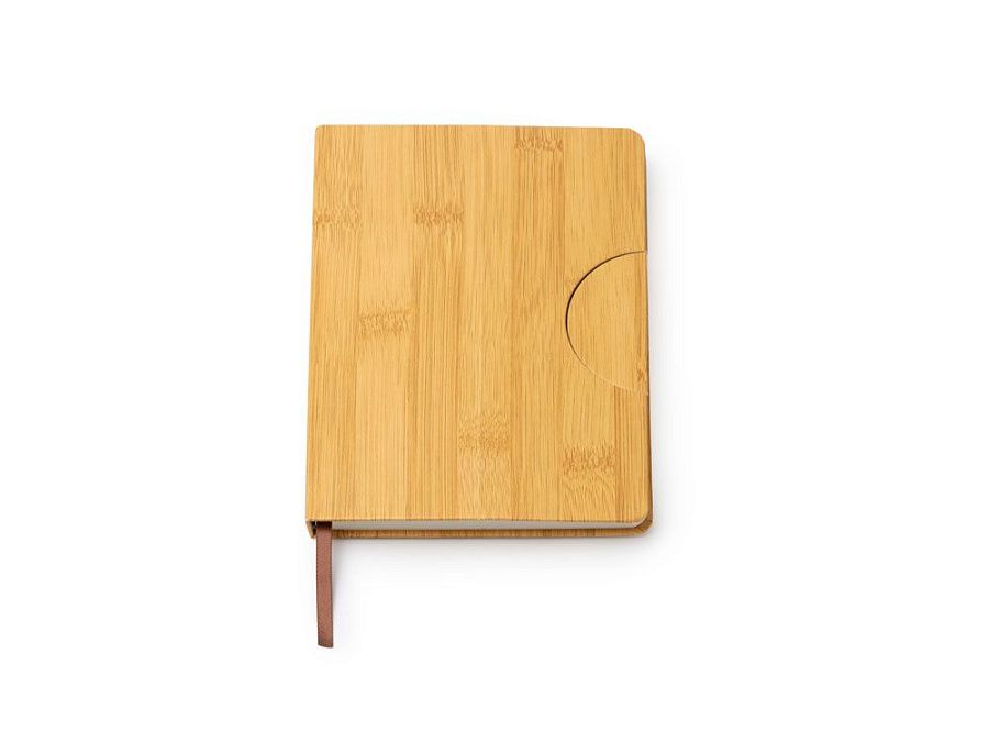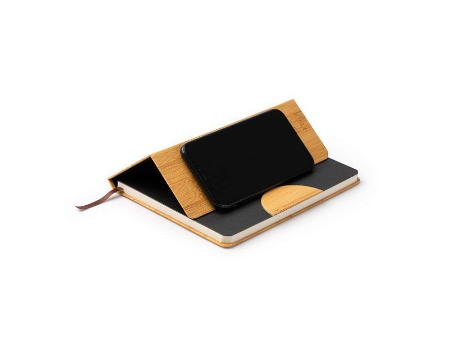 Блокнот формата А5 с жесткой обложкой с эффектом бамбука и функцией подставки. Закладка и 80 простых листов.