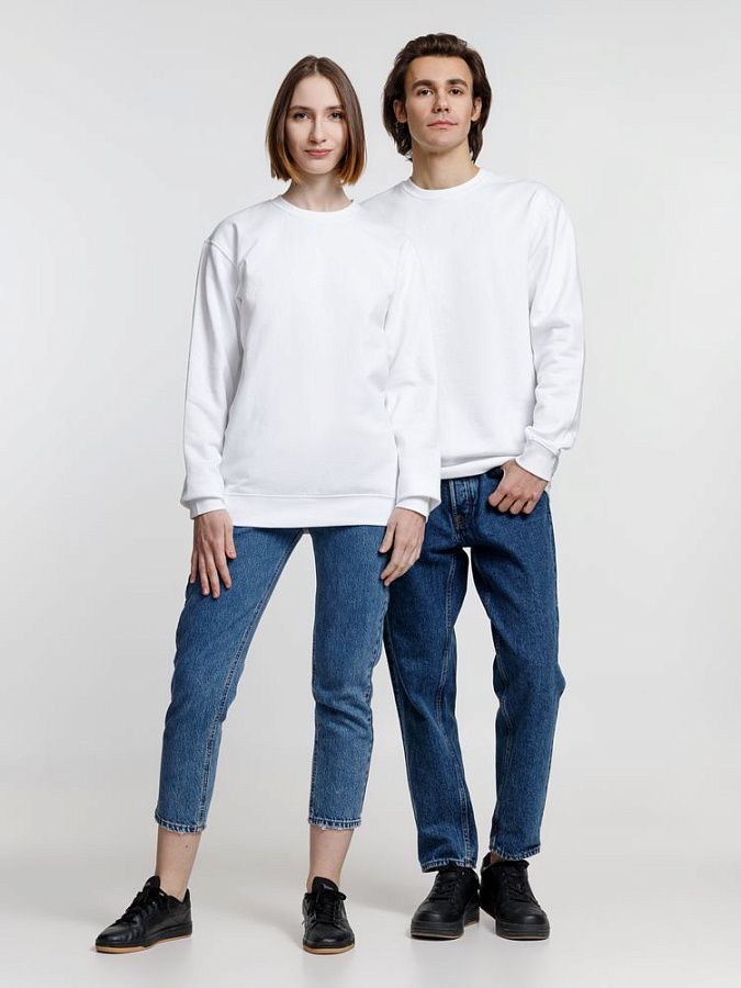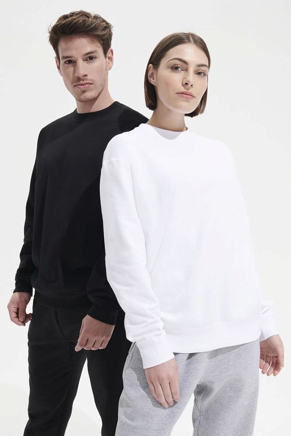Свитшот унисекс из хлопка и переработанного полиэстера с круглым вырезом и втачным рукавом.