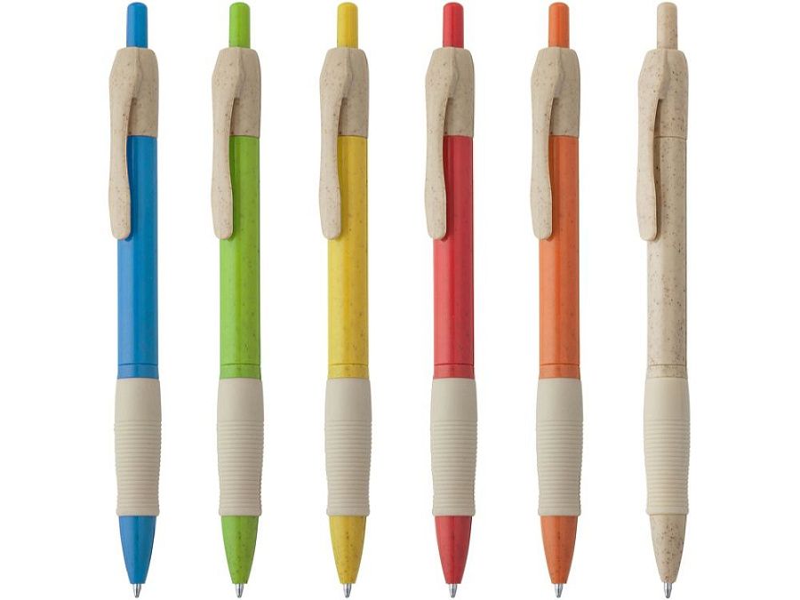 Шариковая ручка из пшеничного волокна и АБС-пластика и удобным захватом. Синие чернила.